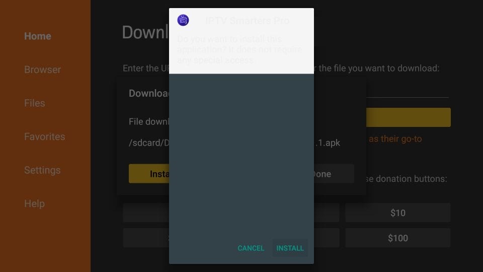 Give it a minute or two until the IPTV Smarter is downloaded onto your FireStick device